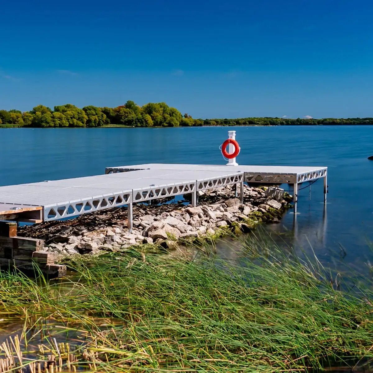 The 8’x8′ Complete Standing Dock Kits comes with all you need to build an 8’x8′ aluminum dock.