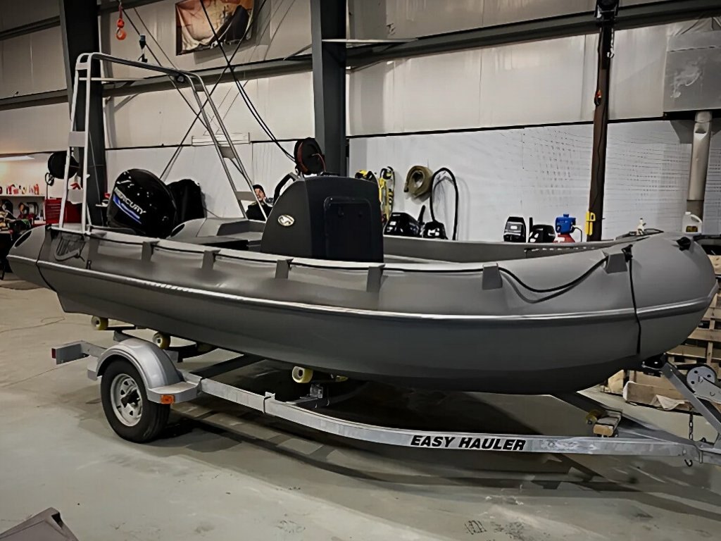 This boat package includes a 2023 Whaly 500R (Dark Grey), 2024 Mercury 60HP (ELPT) SeaPro Engine and Easy Hauler 1822RG Trailer.