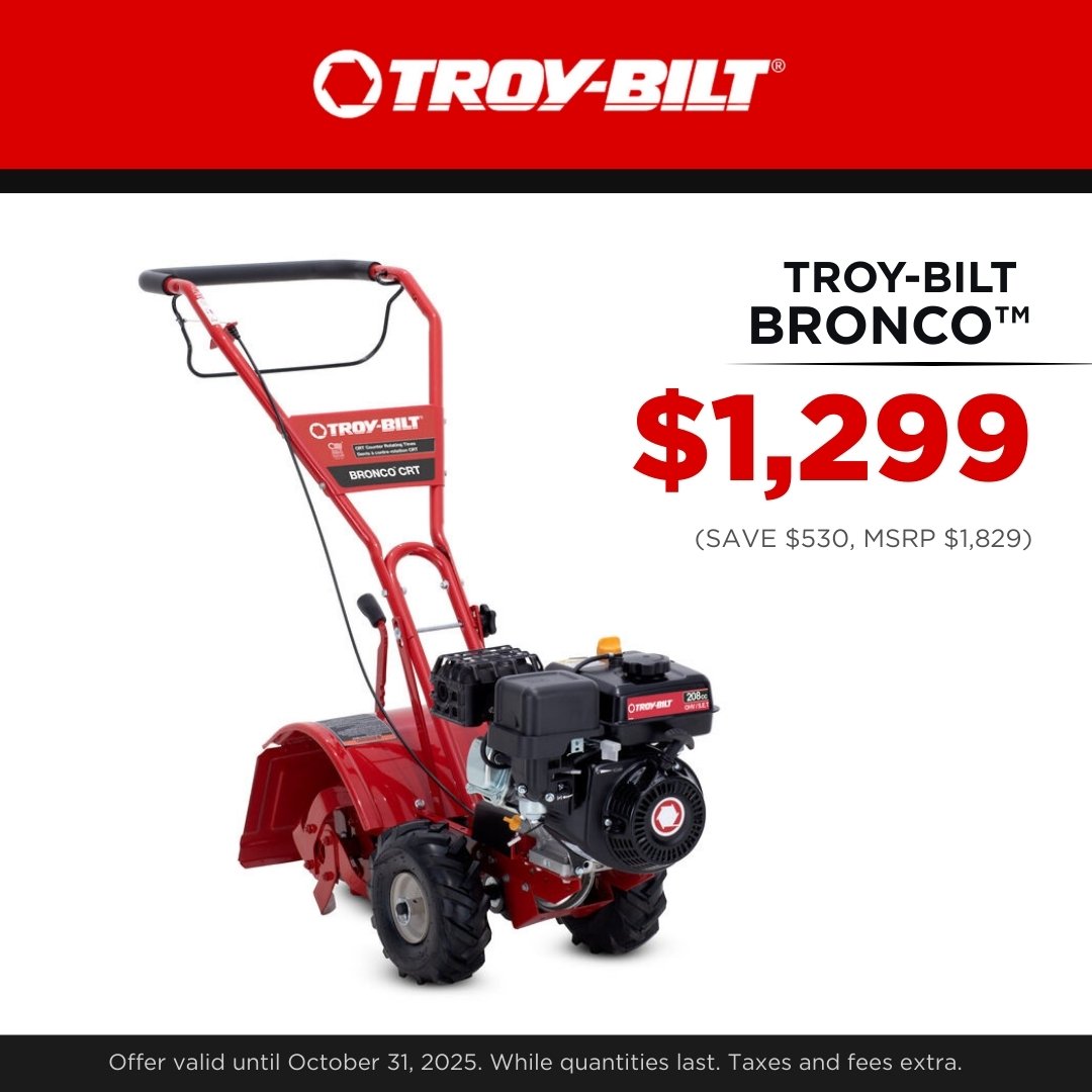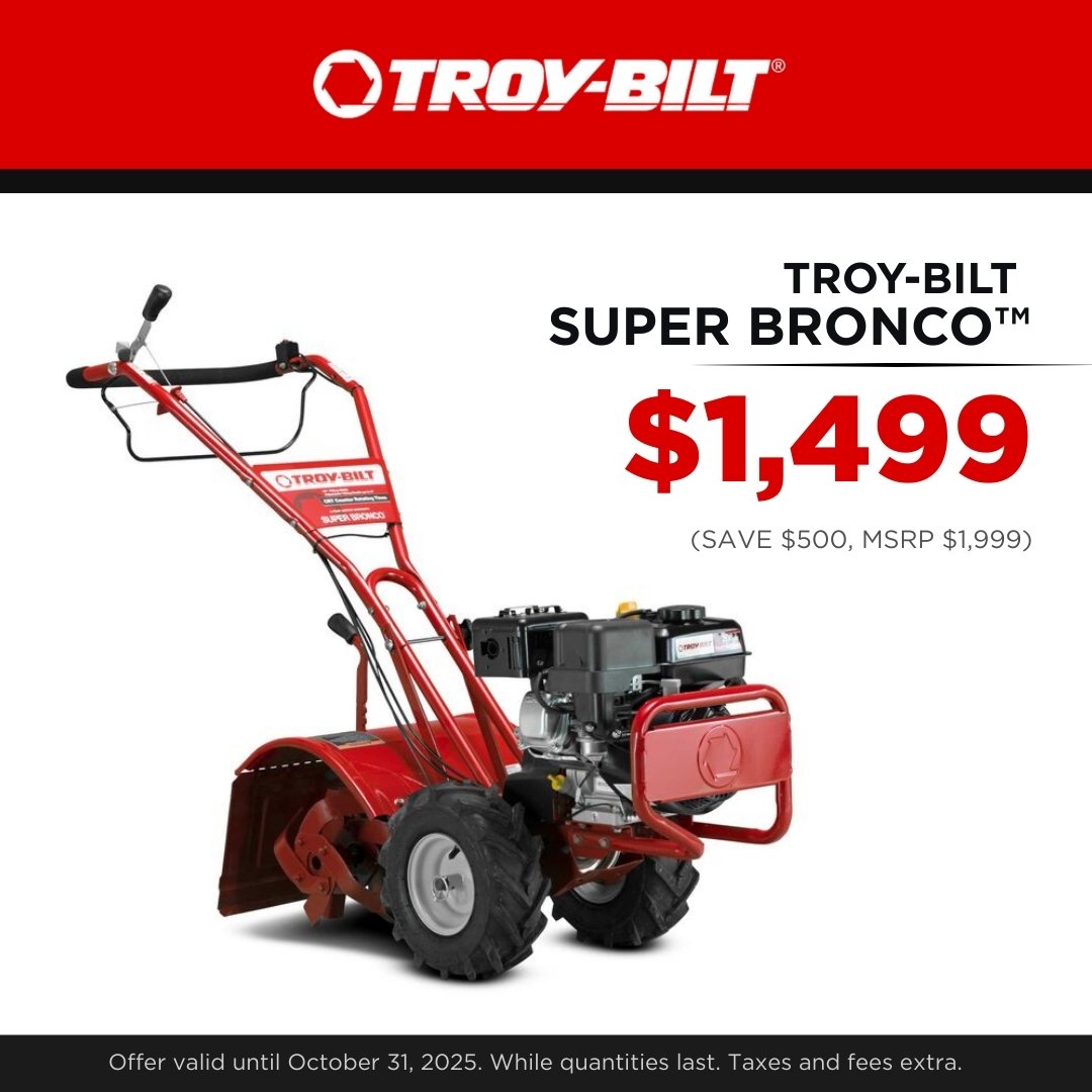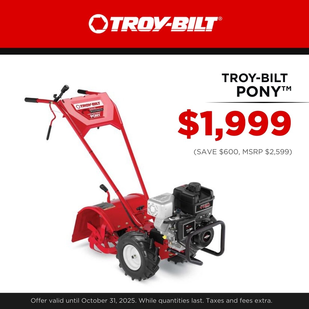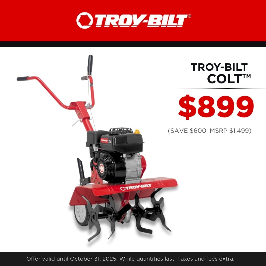 For a limited time, save up to $600 on in-stock Troy-Bilt garden tillers.
