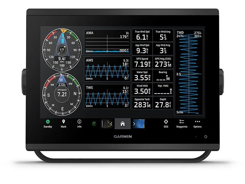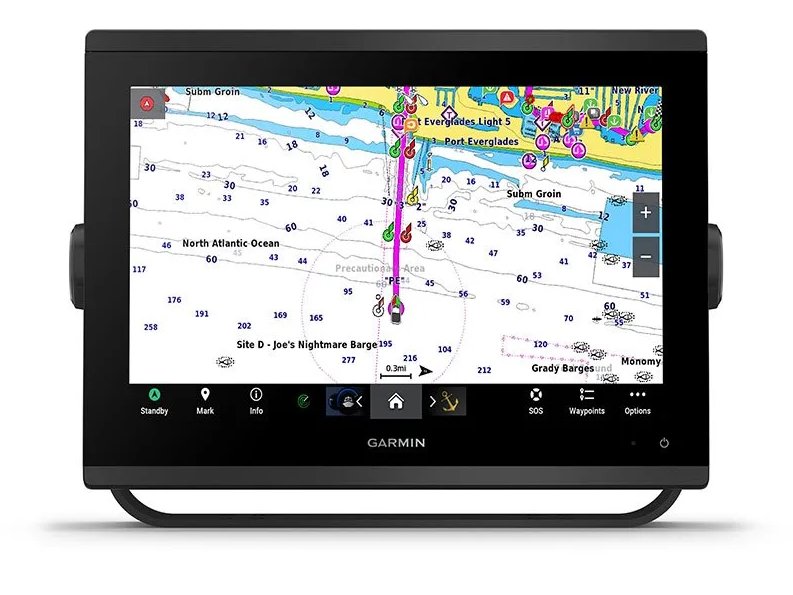 New higher-resolution IPS displays for 9” and 12” plotters offer improved sunlight readability and visibility from any angle, with 50% more pixels than previous-generation 9” GPSMAP devices. |