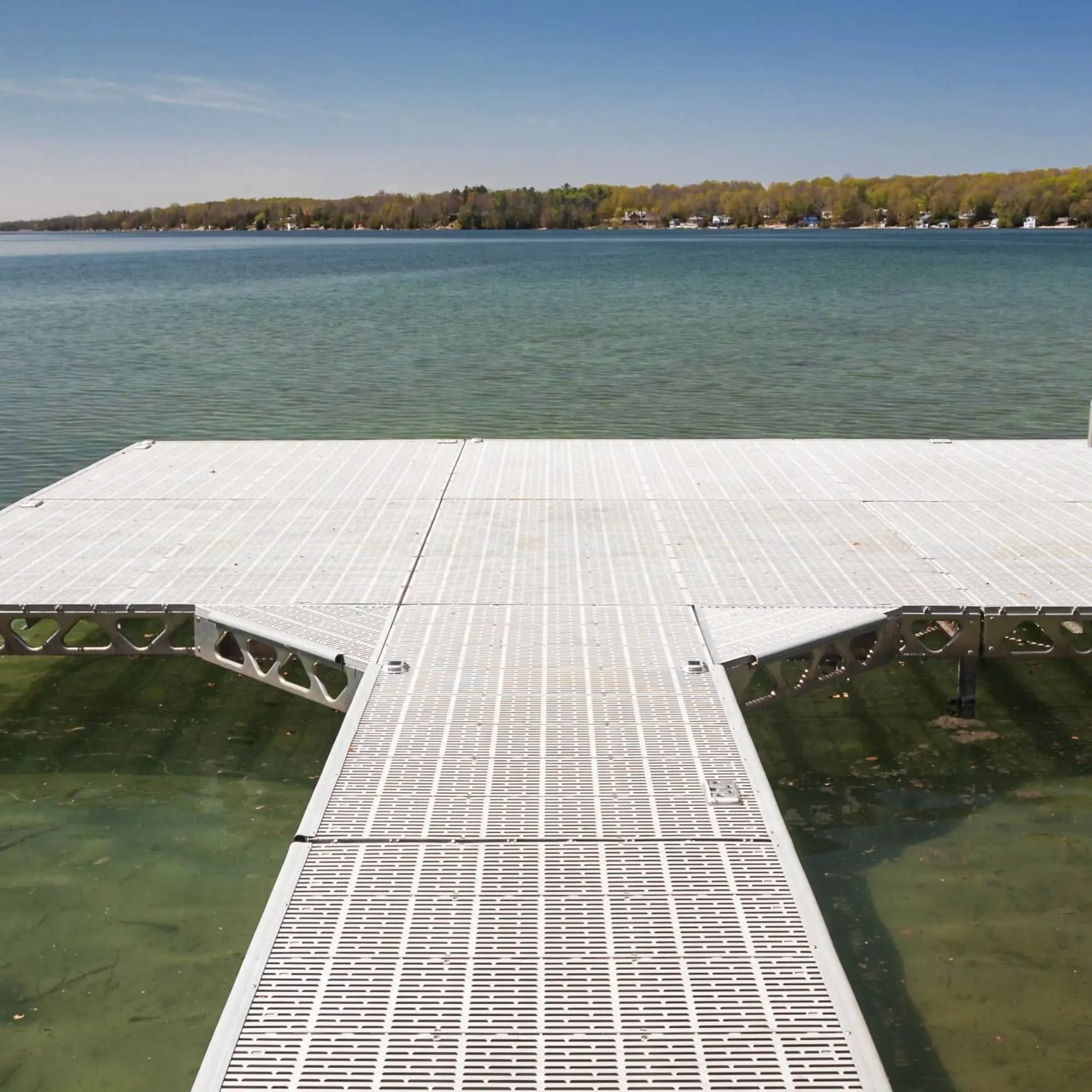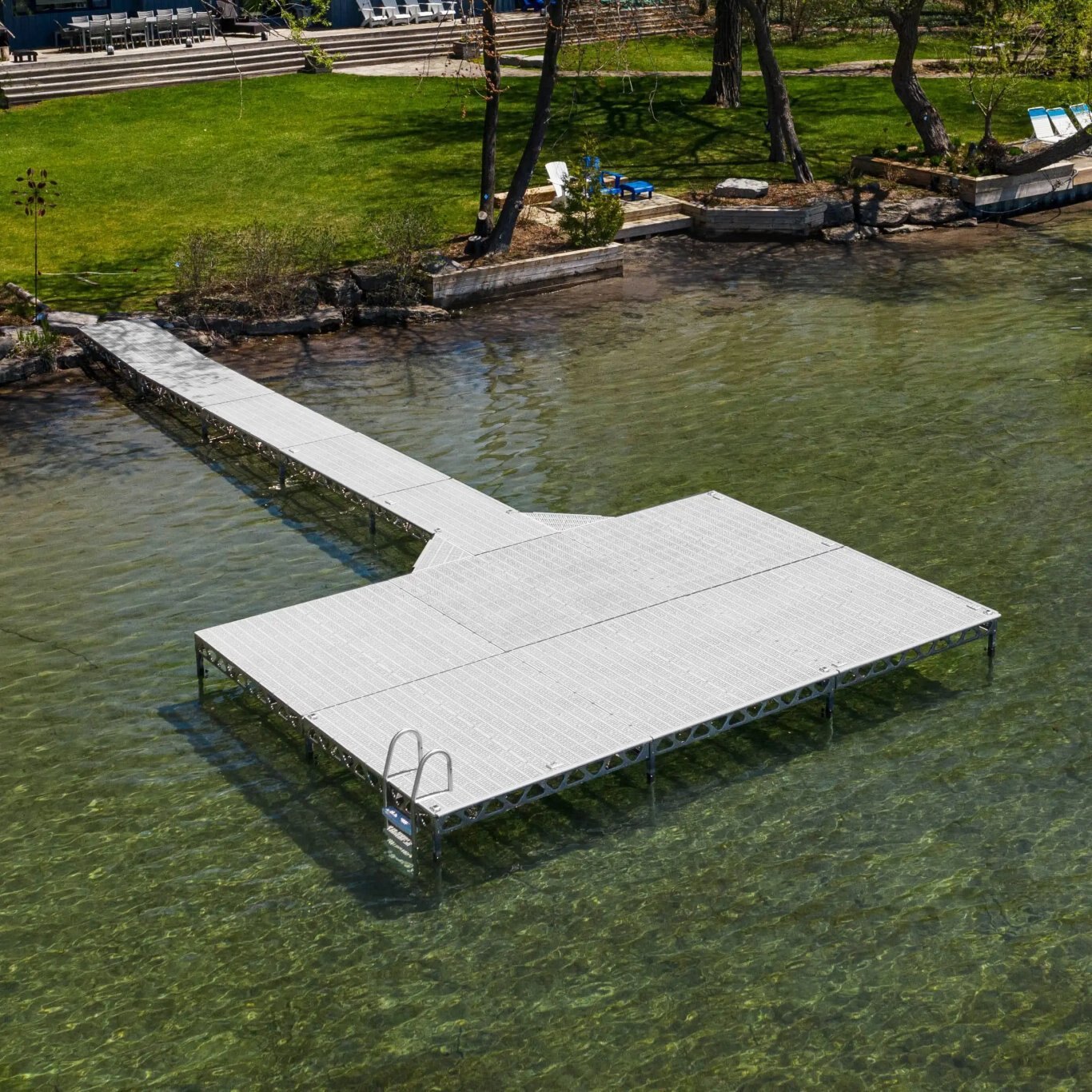 Add more space to you dock with a CanadaDocks™ 4′ Dock Corner Kit. Can be attached to almost any 90 degree angle on our standing dock systems. Also available in 8′. Use our Dock Builder application to configure this section and many more to build your ideal dock. 4′ Complete Dock Corner Kit comes with: