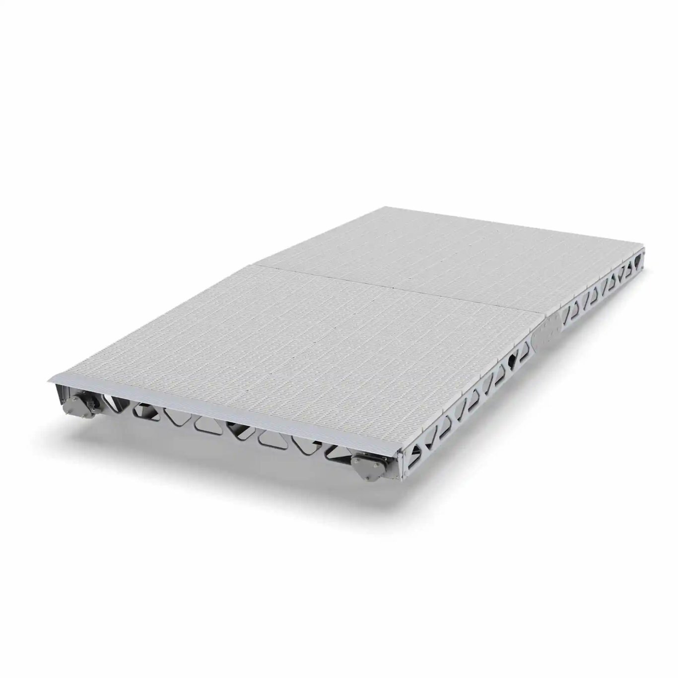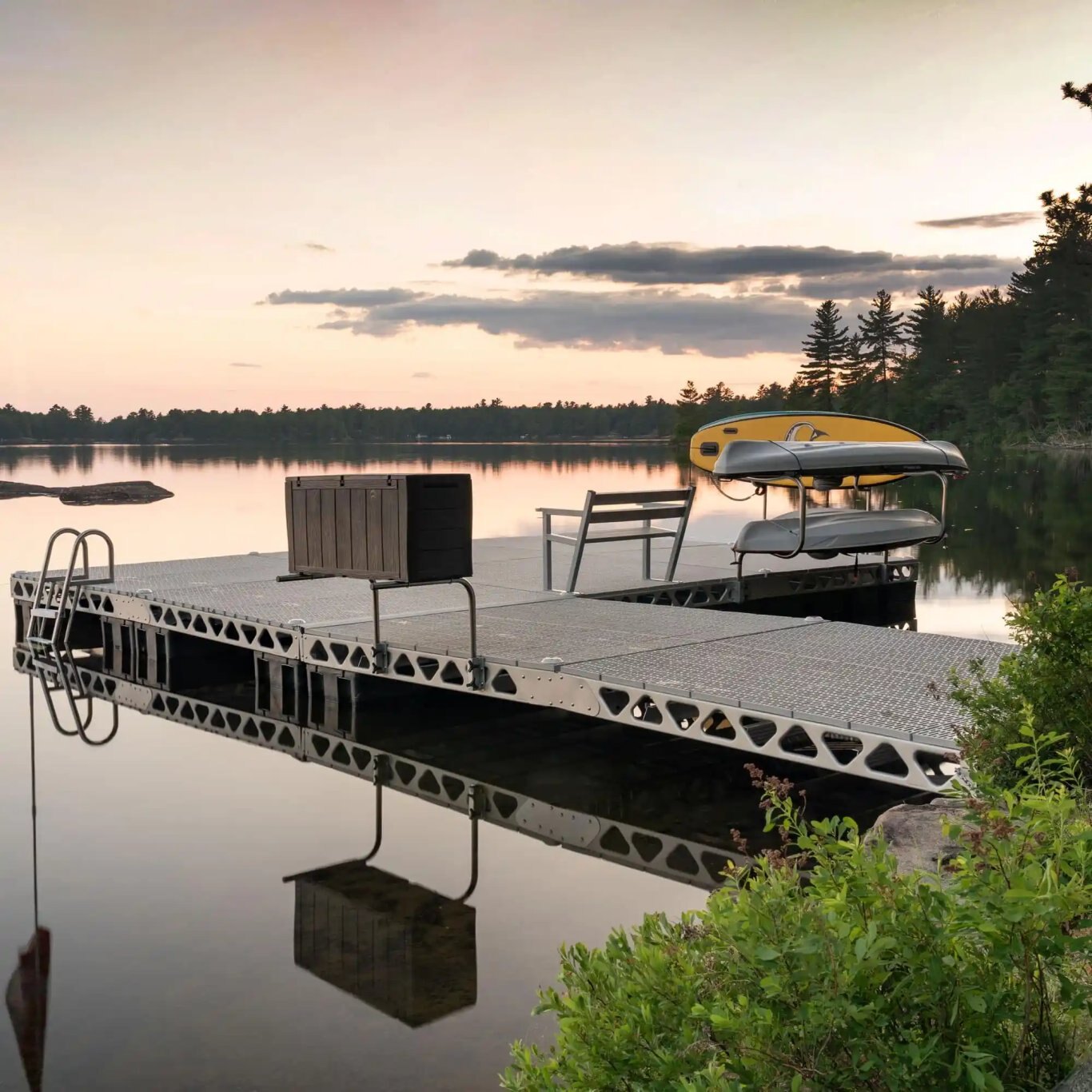 The 8’×16′ Complete Ramp Kit is the largest ramp section in our catalogue. This large ramp section is used for dock configurations that need some distance from shore. The Hinge Kit and Hinge Cover that is now included in all Complete Ramp Kits gives you the flexibility to control the slope in which your ramp is oriented. They are made with corrosion resistant, marine grade aluminum. The unique DIY design makes them easy to assemble and reconfigure as needed. Use our Dock Builder application to configure this section and many more to build your ideal dock. 8’x16′ Ramp Kit contains: