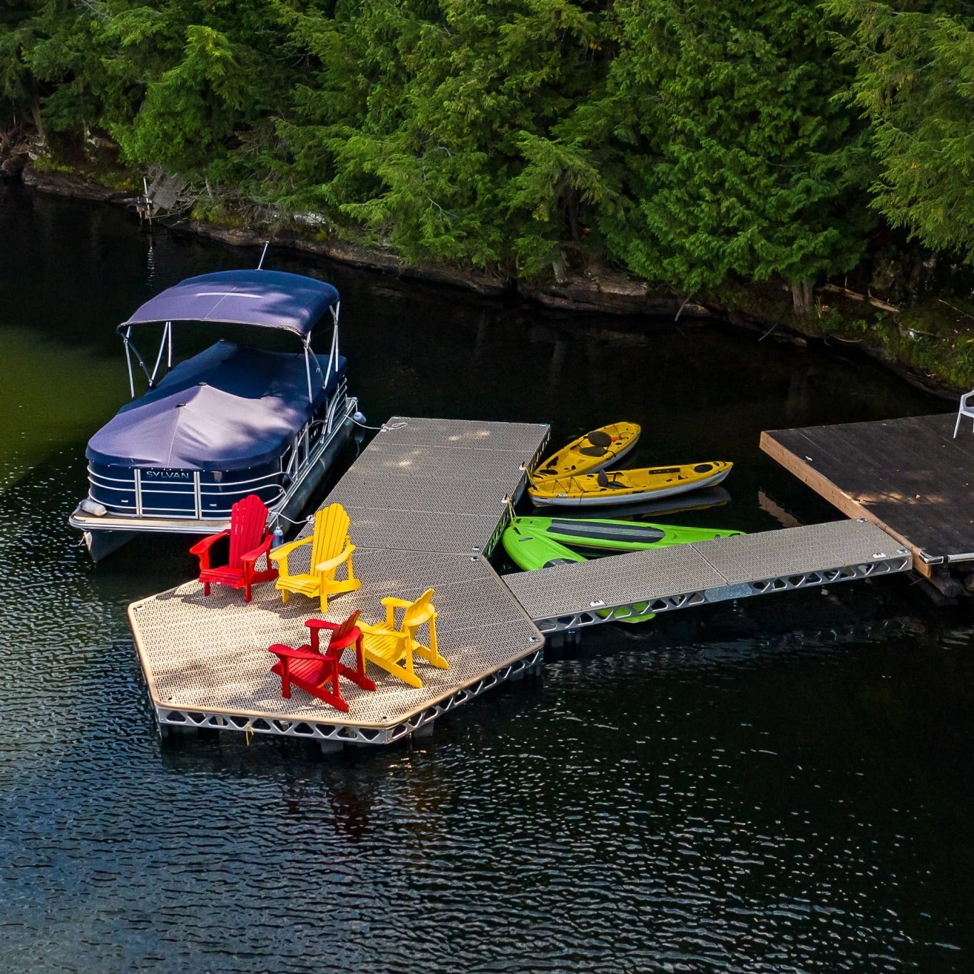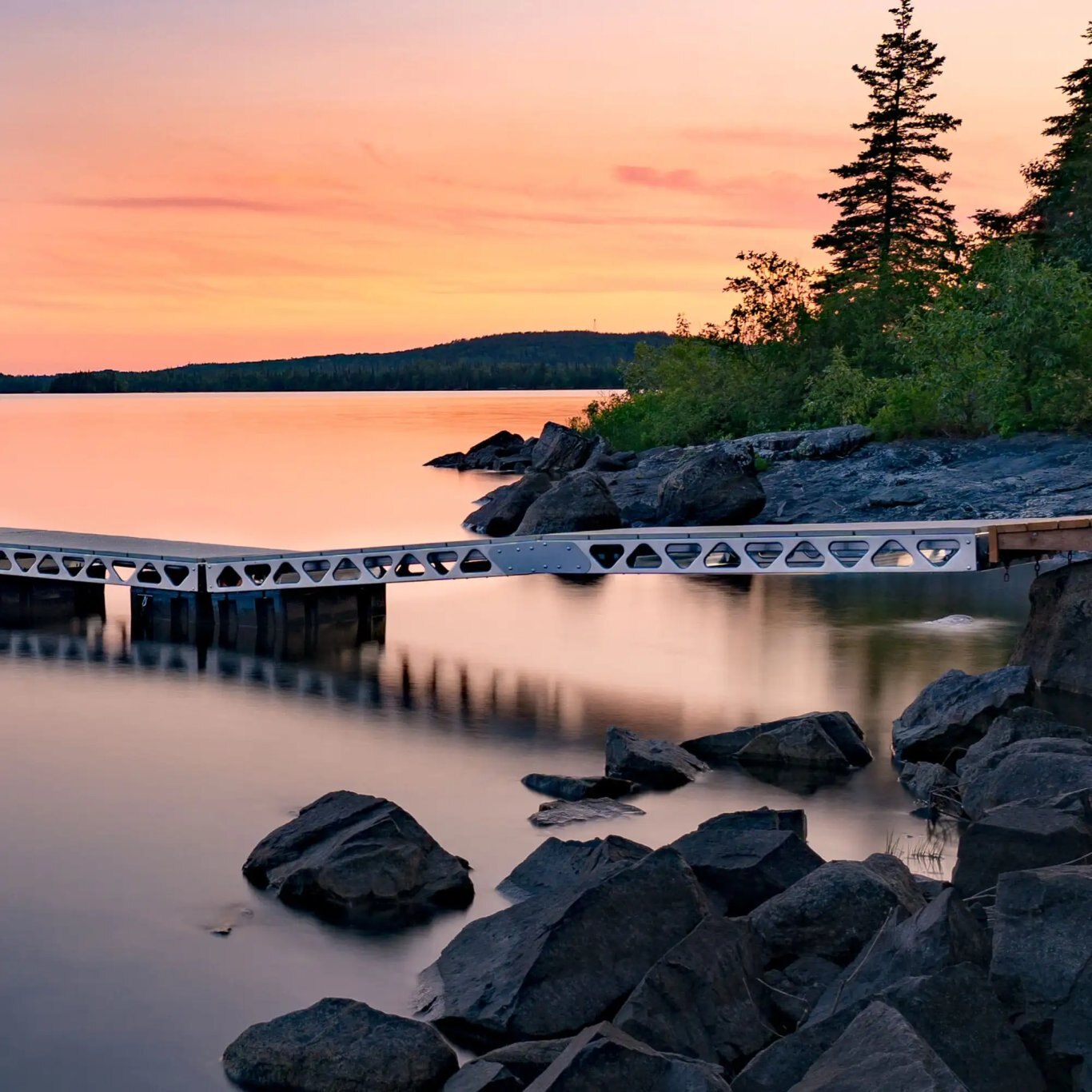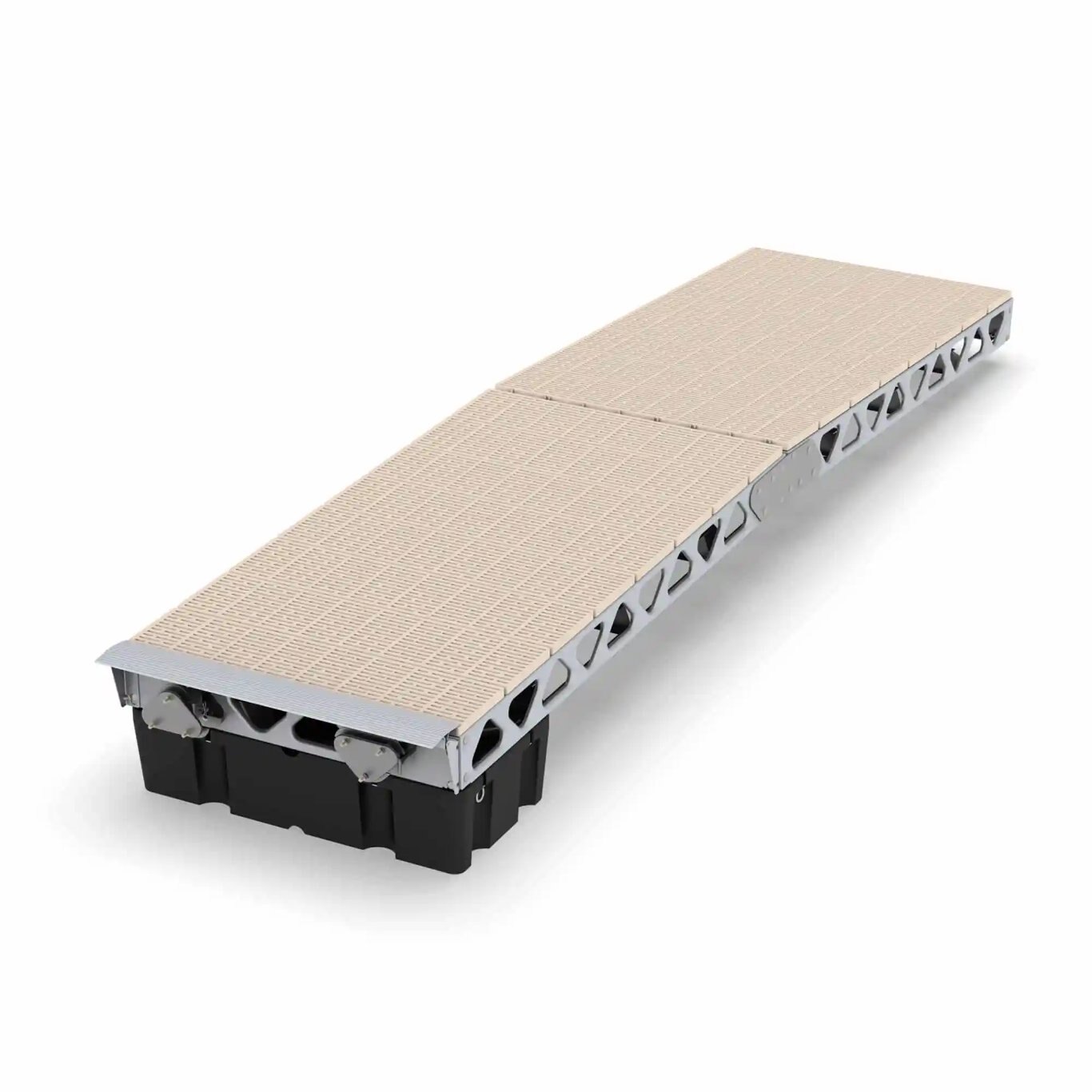 The 4′ x 16′ Complete Floating Ramp is designed for all floating dock configurations. The 16′ length is perfect for rocky and shallow shorelines that require your dock to be installed further out in the water. The Hinge Kit and Hinge Cover that is now included in all Complete Ramp Kits gives you the flexibility to control the slope in which your ramp is oriented. They are made with corrosion resistant, marine grade aluminum. The unique DIY design makes them easy to assemble and reconfigure as needed. Use our Dock Builder application to configure this section and many more to build your ideal dock. 4’x16′ Complete Floating Ramp Kit features: