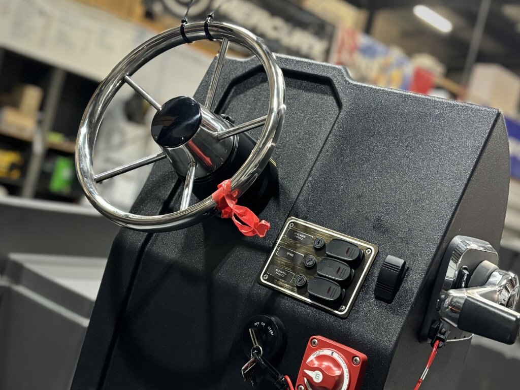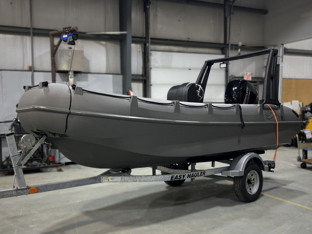 This boat package includes a 2023 Whaly 455R (Dark Grey), 2024 Mercury 50HP (ELPT) Engine and Easy Hauler 1613BG Trailer.