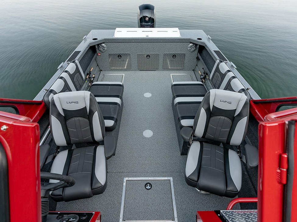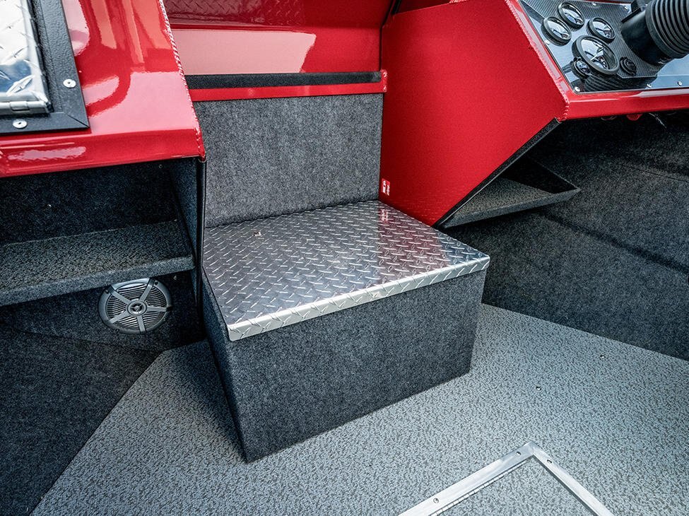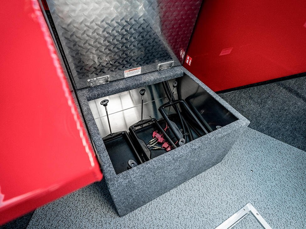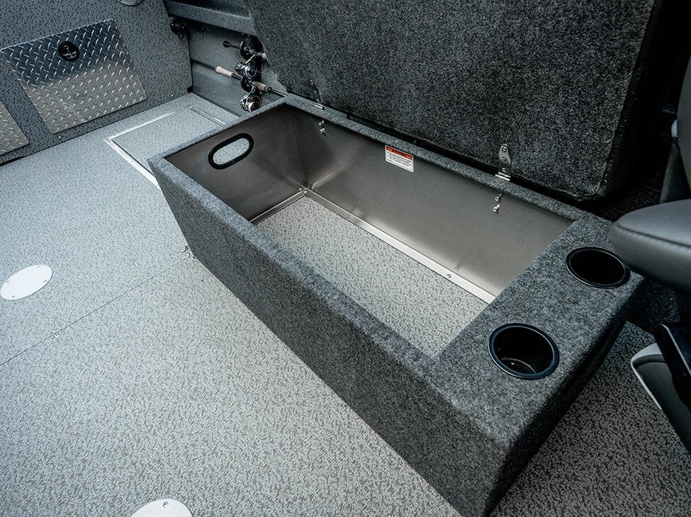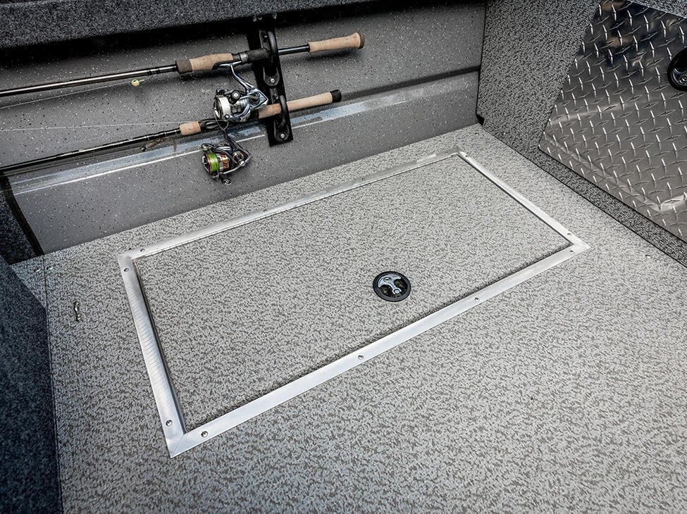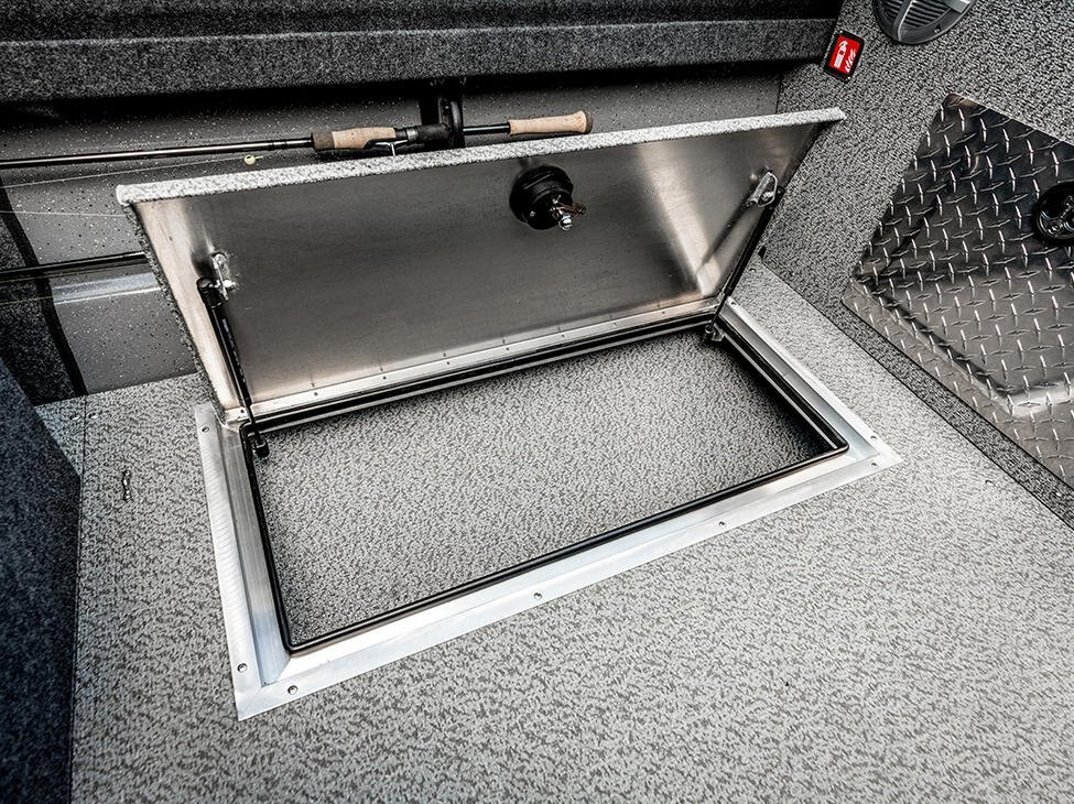 Storage Aft In-Floor Storage - Port & Starboard Bow Locker w/Drain Forward In-Floor Storage Compartment Full Length Welded Side Storage Trays - 2 Locking Interior Transom Access Hatches